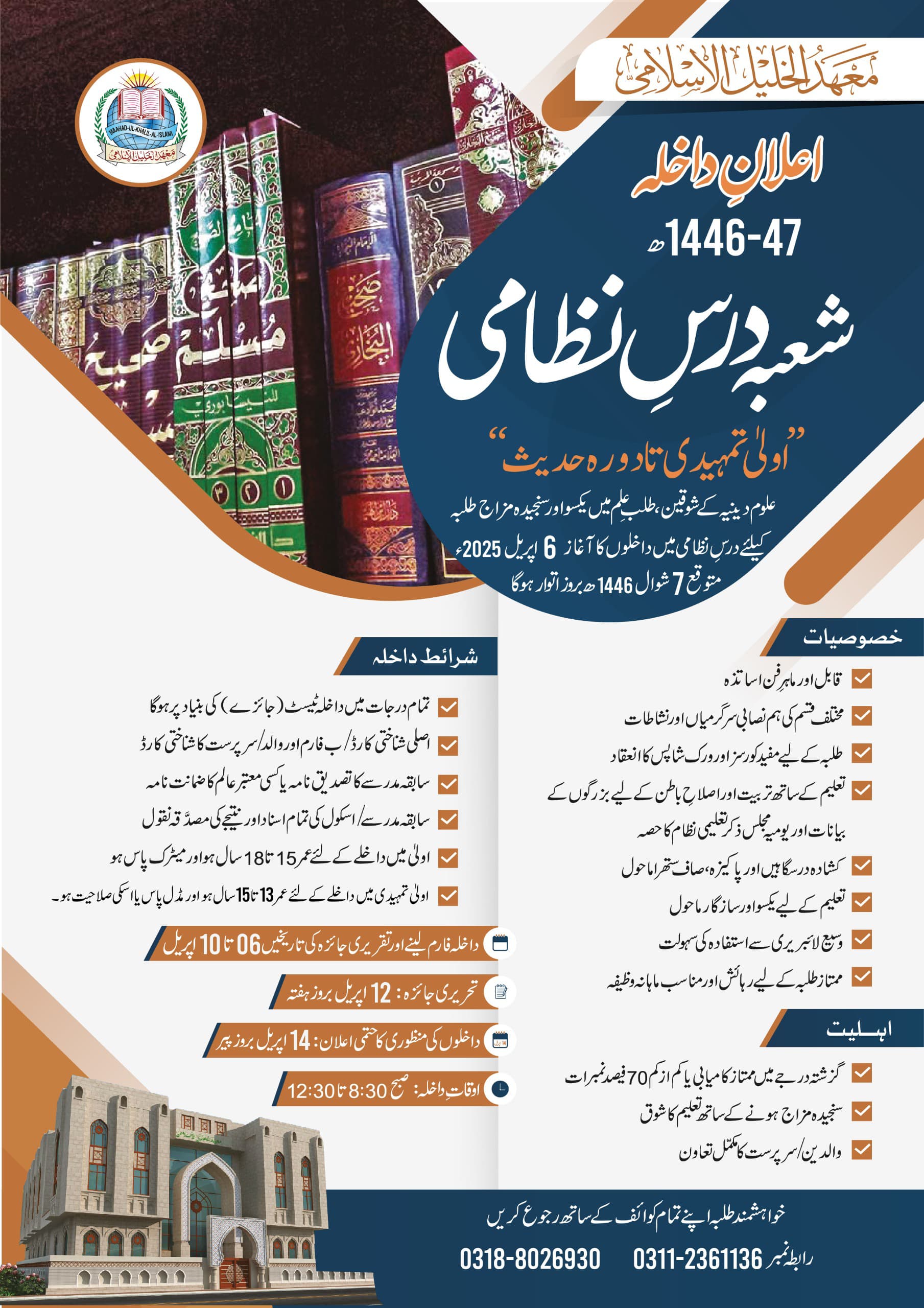 مطلوبہ درجہ کے اشتھار کے نیچے داخلہ فارم کے بٹن پر کلک کرکے داخلہ فارم پر کیجیے ۔