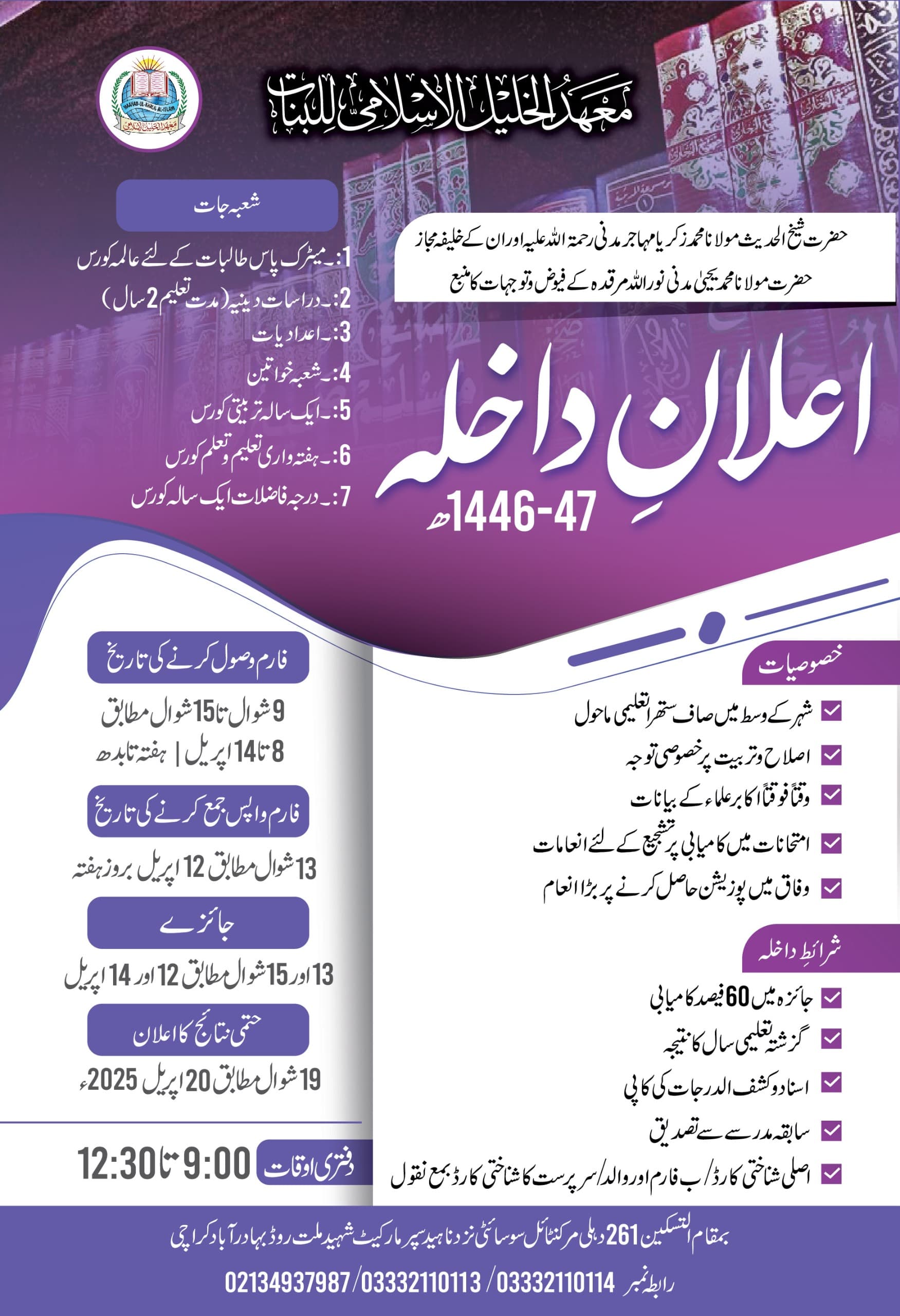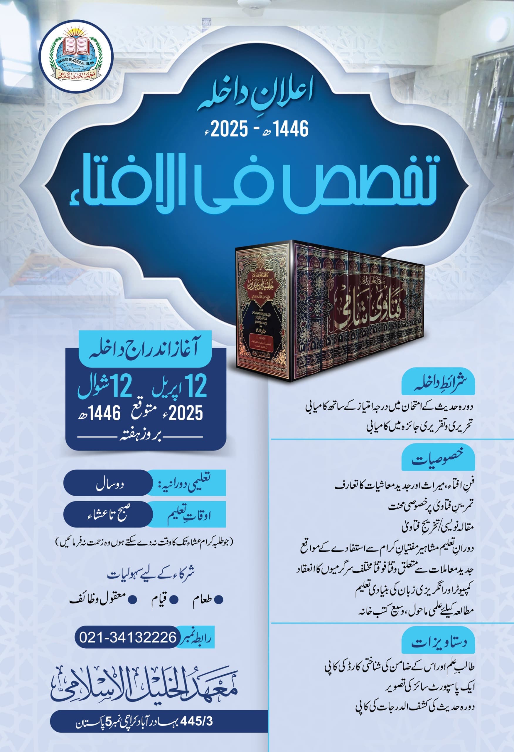 معھد سے صدقات، خیرات، عطیات اور زکوٰة وغیرہ کی مد میں تعاون کے لیے یہاں پر کلک کریں۔